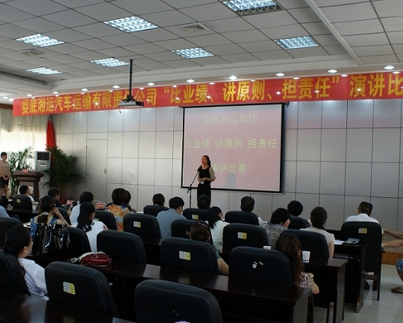 在比賽中,參賽選手緊緊圍繞公司成立五年多來的發(fā)展歷程和重大成就,結合本職工作,贊美身邊的先進典型和感人事跡,頌揚了婁運人“比業(yè)績、講原則、擔責任”的工作作風,暢談在工作中如何愛崗敬業(yè)、勇?lián)熑,爭?chuàng)佳績。富有感染力和說服力的演講,充分展示了婁底湘運人積極向上、奮勇爭先、無私奉獻的良好精神風貌,贏得了現(xiàn)場觀眾的共鳴和熱烈掌聲。