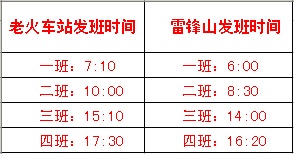 7月6日:開通老火站至古塘、雷鋒山的農村客運班車,每天四班,運行線路及發(fā)班時間如下: