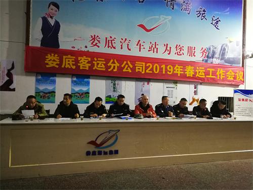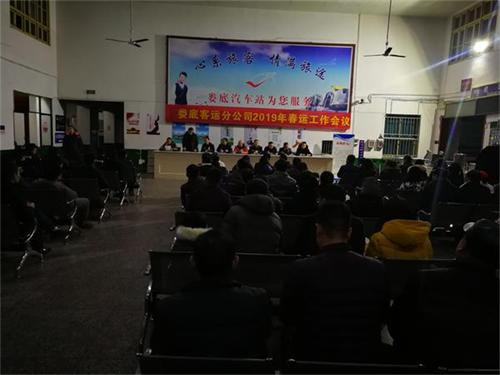 1月17日晚7:30分,婁客司經(jīng)理楊付生在車站候車室主持召開婁客司2019年春運工作會議,婁客司全體員工、承包人和駕駛員等200多人參加,市運管處安全科科長孫漢軒、區(qū)運管局安全科長謝世平、市交警直屬一大隊李愛軍隊長等行業(yè)主管部門領(lǐng)導(dǎo)出席了會議。會議在婁客司司歌“團(tuán)結(jié)就是力量”中拉開了序幕。