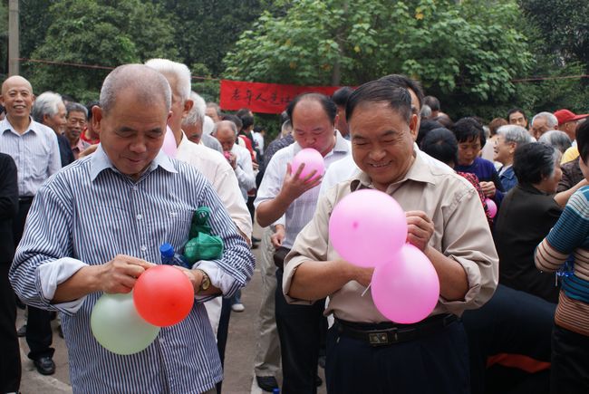 涼秋九月,丹桂飄香。公司籃球場四周懸掛的慶;顒訖M幅醒目靚麗,會場裝點(diǎn)雖然簡樸,但活動的喜慶氣氛濃濃。二十六日上午,家住婁底城區(qū)的300余名公司離退休、內(nèi)退、協(xié)保人員在公司籃球場舉行“迎中秋、慶國慶歡樂聚會吹吹吹”活動。公司工會主席陳石雄主持迎慶活動儀式,董事長兼總經(jīng)理彭瑞華宣布活動開始,董事謝克明向大家報告了公司的經(jīng)營生產(chǎn)形勢,代表公司向離退休、內(nèi)退、協(xié)保人員致以節(jié)日的問候和祝福。參加聚會的中老年朋友相互問候、相互祝福,憶往昔,話家常,氣氛和諧,親切無比。吹氣球時,大家鼓起臉腮,認(rèn)真吹球,形態(tài)多樣,雅氣十足,童心再現(xiàn),樂趣贏贏。吹掛的彩色氣球,筑成一道五彩繽紛的氣球墻,分外壯麗誘人,別有情趣。聚會活動一個個難忘的鏡頭,一個個精彩的瞬間,留下了一串串美好的回憶……。