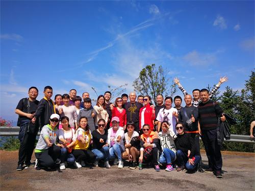 登高遠(yuǎn)眺,是無與倫比的美麗,像是人間仙境,山上的霧氣時升時降,所有的美景盡收眼底,天空格外的藍(lán),飛機(jī)飛過時,又感覺觸手及可了。在歡快的合影后,準(zhǔn)備下山了,大家手牽著手,齊聲歡唱“團(tuán)結(jié)就是力量,團(tuán)結(jié)就是力量,這力量是鐵,這力量是鋼……”一路歌聲,一路歡笑,一路汗水,一路幸福!